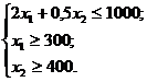 Пример. Аптека закупает у населения плоды шиповника по цене 2 руб за 1 кг и рябины по цене 0,5 руб за 1 кг, а затем, расфасовав их, продает по цене соответственно 3 руб и 1 руб за кг. На закупку аптеке разрешено использовать не более 1000 руб., а план закупок составляет 300 кг шиповника и 400 кг рябины. Аптека закупила у населения 400 кг шиповника и 400 кг рябины. Оптимальны ли результаты в отношении прибыли от закупок и продажи плодов? Найти оптимальный план, соответствующий оптимальной прибыли.