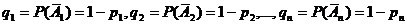 , независимых в совокупности, равна разности между единицей и произведением вероятностей противоположных событий