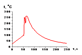 При пайке волной припоя нижняя поверхность печатной платы, а, следовательно и паяные соединения постоянно омываются расплавленным припоем, поэтому температура пайки равна температуре расплавленного припоя. Время пайки зависит от скорости движения платы по конвейеру и ширины волны. Таким образом, основные параметры пайки (температура и время) легко регулируются, что гарантирует стабильное высокое качество паяных соединений. Зависимость температуры паяных соединений от времени (термопрофиль) при пайке двойной волной припоя показан на рис. 1.