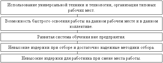 Ø гибкость найма, перемещений, увольнений на уровне предприятия;
