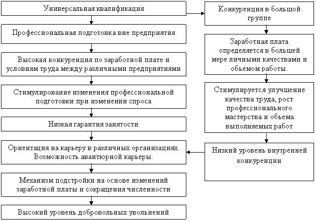 Каждая фирма на таком рынке комплектуется персоналом «со стороны», уже соответственно подготовленным. Условно такой рынок можно назвать внешним.