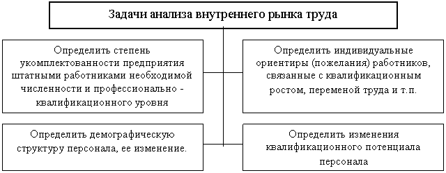 Анализ функционирования внутреннего рынка труда позволяет выявить возможность использования рабочей силы фирмы (организации) для решения новых производственных задач. Задачи этого анализа представлены на рис. 3.1.7.
