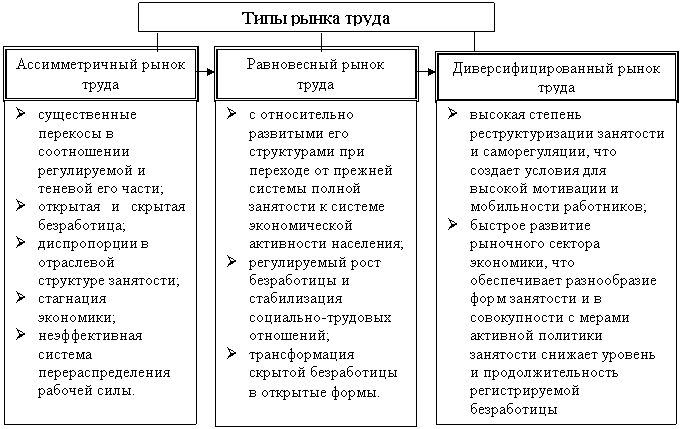 Рис. 3.2.2. Характеристики основных типов рынка труда