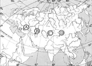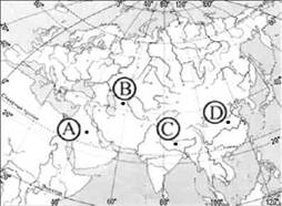 20. Какой буквой на карте Евразии обозначена самая высокая точка материка? 1) А 2) В 3) С 4) D