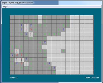 В ходе курсовой работы были разобраны принципы, по которым работает компьютерная игра «Сапер» от компании Microsoft. Они были использованы для написания собственной игры. При программировании использовалась библиотека OpenGL, языком создания программы был С++.