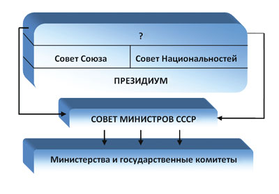 7. На изображенной ниже схеме представлена структура высших органов власти по Конституции СССР 1977 г. Какой высший орган государственной власти обозначен на схеме знаком вопроса?