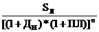 Sл = Р * [(1 + Дн) * (1 + ПЛ)]n,