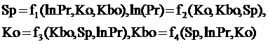 Для определения зависимостей между фильтрационно-емкостными параметрами сложнопостроенных коллекторов по данным исследования керна посредством программы MGUA были построены нелинейные зависимости. Пусть Sp-объемная плотность породы (г/см3); lnPr – логарифм абсолютной проницаемости( мД); Кbo - коэффициент остаточной водонасыщенности (%) , Ко –коэффициент открытой пористости (%). Полагая три параметра известными, четвертый определяется. Такие соотношения были построены отдельно для неокомских, ачимовских и юрских отложений.