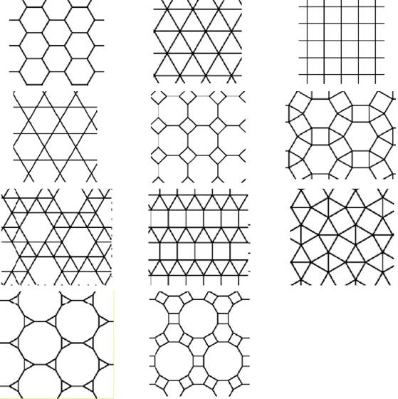 6. На занятии математического кружка Ваня узнал, что паркеты, которые составлены только из правильных многоугольников, называют правильными паркетами. И что существует ровно 11 различных правильных паркетов. Все они показаны на этих рисунках.