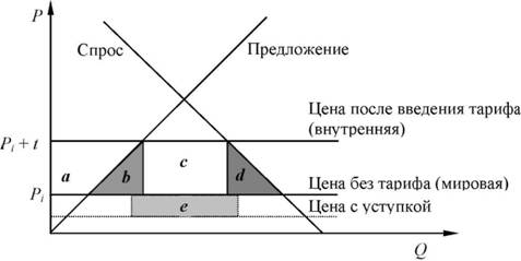 Рис. Последствия введения тарифа для благосостояния экономики