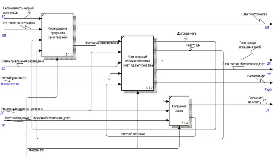 Рисунок 5.10. Детализированная схема функциональной структуры подсистемы управления долгом и финансовыми активами в части управления долгом