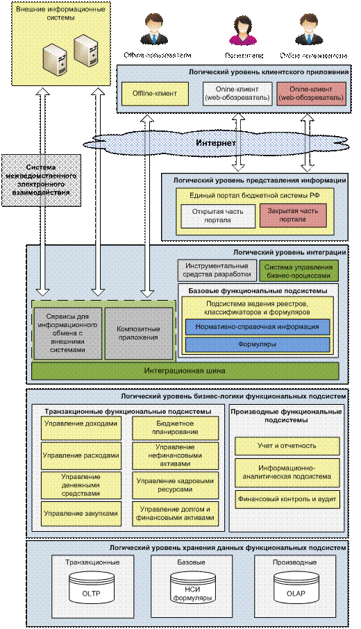 В системе «Электронный бюджет» в соответствии с данным подходом выделяются следующие логические уровни архитектуры: