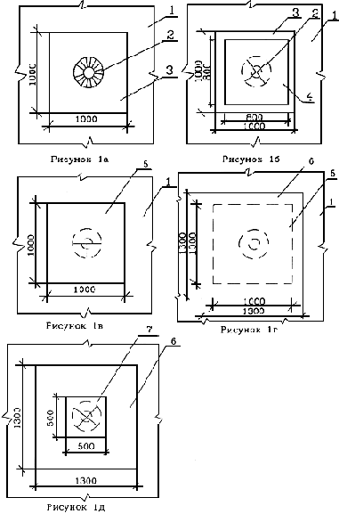 2.9.1 При трещинах в слоях водоизоляционного ковра у примыканий к вентиляционным трубам необходимо снять защитный зонт (рисунок 3, поз.1), убрать часть кровельных материалов и материалы основания под кровлю, расположенные выше трещины (рисунок 3, узел 1). Дальнейшие работы по ремонту примыкания к вентиляционным трубам выполняются в следующей последовательности: