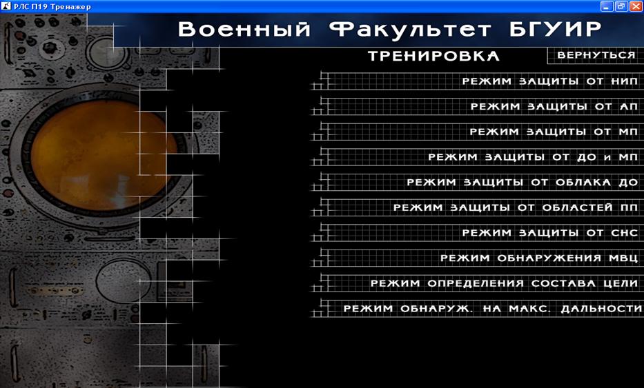 Выбор режима пользователь выбирает с помощь меню (рис.15). В каждом из режимов работы виртуальных тренажеров предусмотрена возможность получения практических навыков по темам практических и лабораторных занятий (рис.16).