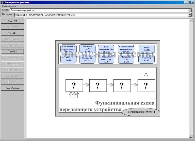 Рис 18. Содержание раздела «контроль знаний». Вид экрана с вариантом организации опроса «из данных элементов собери схему».