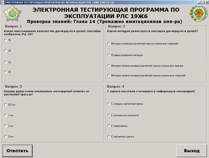 Раздел ЭУМКД «контроль знаний» реализован на основе тех же принципов, по которым реализованы и ранее рассмотренные разделы. Раздел меню (рис. 17) позволяет пользователю получить доступ к программам контроля знаний, как по разделам дисциплины, так и по вопросам, выносимым на экзамен или зачет. Модули контроля в ЭУМКД могут быть автором ЭУМКД легко заменены. Принципы построения таких модулей могут быть различными, начиная от тестовых, построенных по принципу «выбери правильный ответ» (рис.19), так и более сложных «собери схему» (рис.19,20) и многих других.