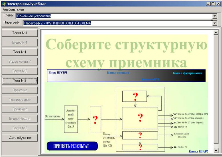 Рис 20. Содержание раздела «контроль знаний». Вид экрана с вариантом организации опроса «собери схему».