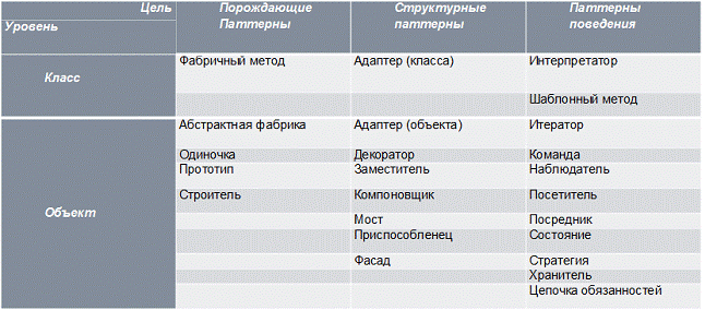 В общем случае паттерн состоит из четырех основных элементов: имя, задача, решение, результаты.