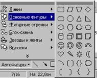 Нужную фигуру необходимо выбрать, щелкнув по соответствующей кнопке на панели Рисование. Затем следует разместить фигуру в определенном месте слайда. Если создается несколько одинаковых фигур, целесообразно воспользо-ваться стандартными операциями: Копирование, Вставка.