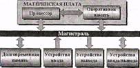 С помощью графических примитивов можно создавать различные схемы, например схему «Структурная схема компьютера» для слайда 2.