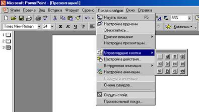 В процессе показа слайдов указатель мыши не виден на экране, но он сразу появляется, стоит только начать перемещение мыши. В процессе демонстрации презентации для перехода на нужный слайд можно также пользоваться управляющими кнопками и гиперссылками.