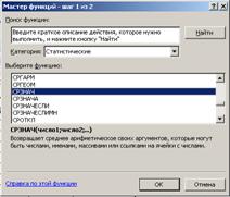 Рисунок 3 – Выбор функции расчета среднего значения СРЗНАЧ