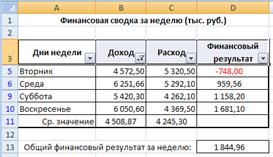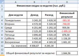 Обратите внимание, как изменился цвет отрицательных значений финансового результата на красный.