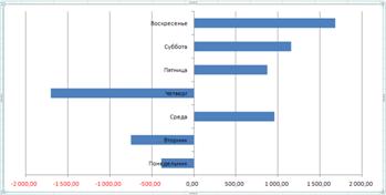 9. Постройте диаграмму (линейчатого типа) изменения финансовых результатов по дням недели.