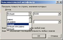 В открывшемся окне Пользовательский автофильтр задайте «Больше 4200» (рис 8).