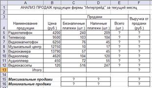 Ячейки, в которых выполнена заливка серым цветом, должны содержать формулы!