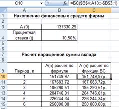 Рисунок 7 - Результаты расчета накопления финансовых средств фирмы (Задание 2)