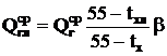 (табл. 3) и строится подобный график в абсолютных значениях тепловых нагрузок. Все ординаты графика вычисляются по формуле: