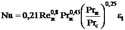 7. Число Нуссельта жидкости определяют из критериального уравнения для турбулентного режима движения воды
