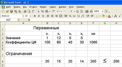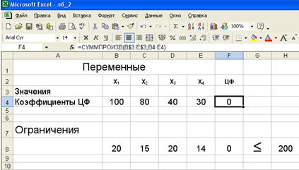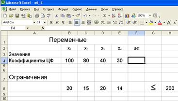 · введем адреса искомых переменных $B$3:$E$3.