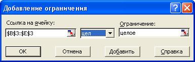 · кнопка Добавить. Появляется диалоговое окно Добавление ограничения;