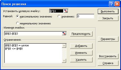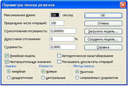 · на экране диалоговое окно Параметры поиска решения;
