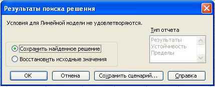 Появится диалоговое окно Результаты поиска решения.