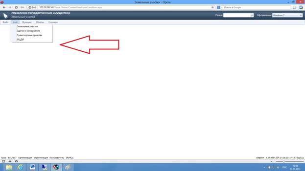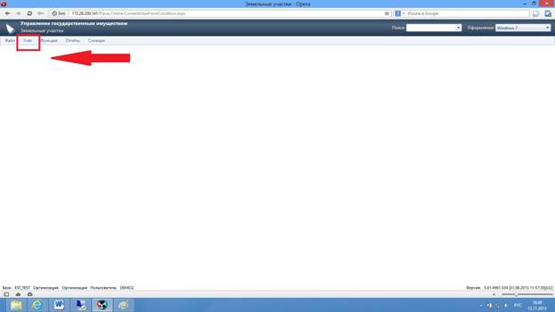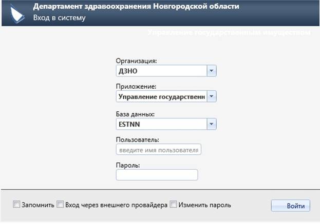 1. Для начала работы в системе в поле приложение необходимо выбрать значение «Управление государственным имуществом»