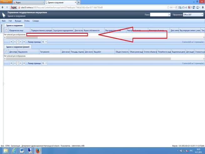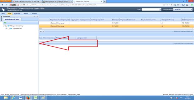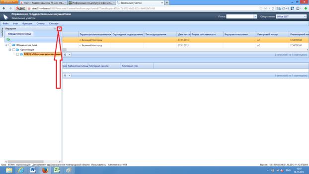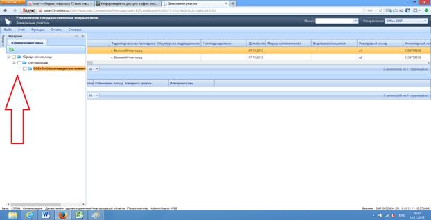 Для первоначального просмотра сохранившейся запись об объекте имущества, необходимо после сохранения карточки выбрать свою организацию из иерархического списка (см. П.3.1.6)