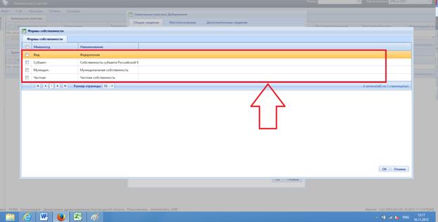В этом случае, при выборе значения, найдите в списке словаря требуемое значение, нажмите на выбранное значение левой кнопкой мыши, далее нажмите левой кнопкой мыши на клавишу ОК.