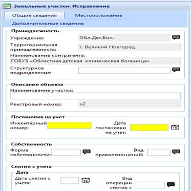 Некоторые поля на формах обязательны для заполнения, данные поля выделены желтым цветом (рис.3.1.12.).