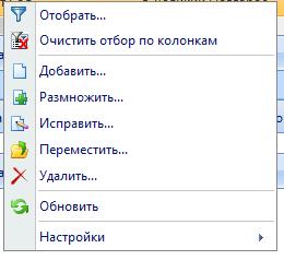 Контекстное меню (рис. 3.1.16) содержит определённый набор функций.
