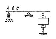 193 | На столе собрана установка. Имеется масштабная линейка. Какие величины сил покажет динамометр, если груз массой 500 г подвешивать в точках A, B,C. Ответы проверить опытом, открыв шкалу.