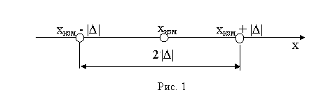 «Процесс любого измерения только тогда считается полностью завершенным, когда указаны абсолютные и относительные погрешности измерений. Модуль абсолютной погрешности измерения |D| позволяет указать интервал, внутри которого находится истинное значение измеряемой величины. Длина этого интервала равна 2*|D| (Рис. 1). Другими словами, абсолютная погрешность показывает, на сколько истинное значение измеряемой величины может отличаться от результатов измерения. Качество измерений характеризует относительная погрешность, которая показывает, во сколько раз модуль абсолютной погрешности |D| меньше измеряемой величины Xизм. Т. е. при измерении неизвестной величины измеряемая величина должна находится в интервале [Xизм+_|D|], а результат измерения можно принять за истинное с значение с относительной погрешностью e=Dx/Xизм.