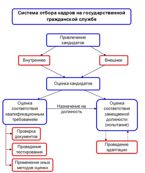 На рисунке 1 схематично представлен процесс отбора кадров на государственной гражданской службе.