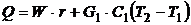 где: W – количество испаренной влаги, кг/с; r – теплота испарения влаги, Дж/кг; C1 – теплоемкость продукта, Дж/(кг·К); T1 и T2 – начальная и конечная температура продукта, К.