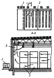 Рис. 4.47. Принципиальная схема камеры для охлаждения фруктов с интенсивным движением воздуха |