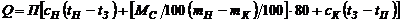 где: cН, cК – удельная теплоемкость мороженого до и после закаливания, Дж/(кг·К); tЗ, tП – температура мороженого при замерзании и после закаливания, °C; mН, mК – массовая доля воды до и после закаливания, %; tМ – температура мороженого, °C.