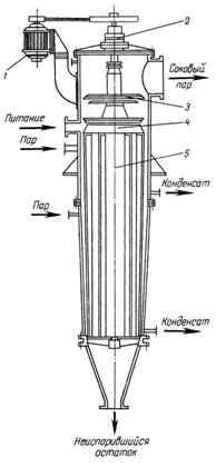 1. Испарители, в которых процесс происходит в тонком слое жидкости, создаваемом на внутренней поверхности неподвижного корпуса с помощью вращающегося ротора.
