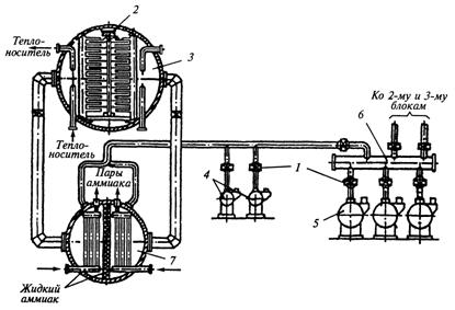 Система холодоснабжения включает пять аммиачных двухступенчатых агрегатов общей холодопроизводительностью 3142500 кДж/ч. Каждый агрегат комплектуется компрессором с электродвигателем. Питание жидким аммиаком потребителей холода предусмотрено аммиачно-циркуляционной системой с нижней подачей жидкого аммиака.